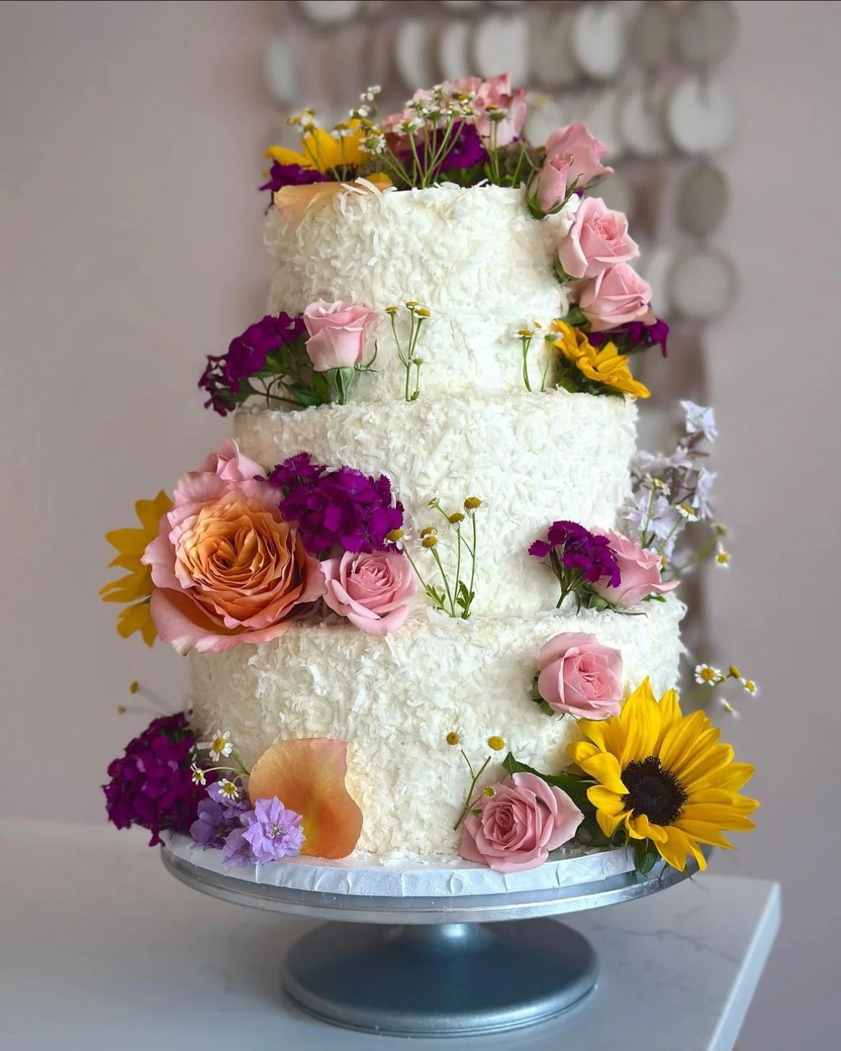 Available in chocolate or coconut cake with chocolate, vanilla or coconut vegan frosting