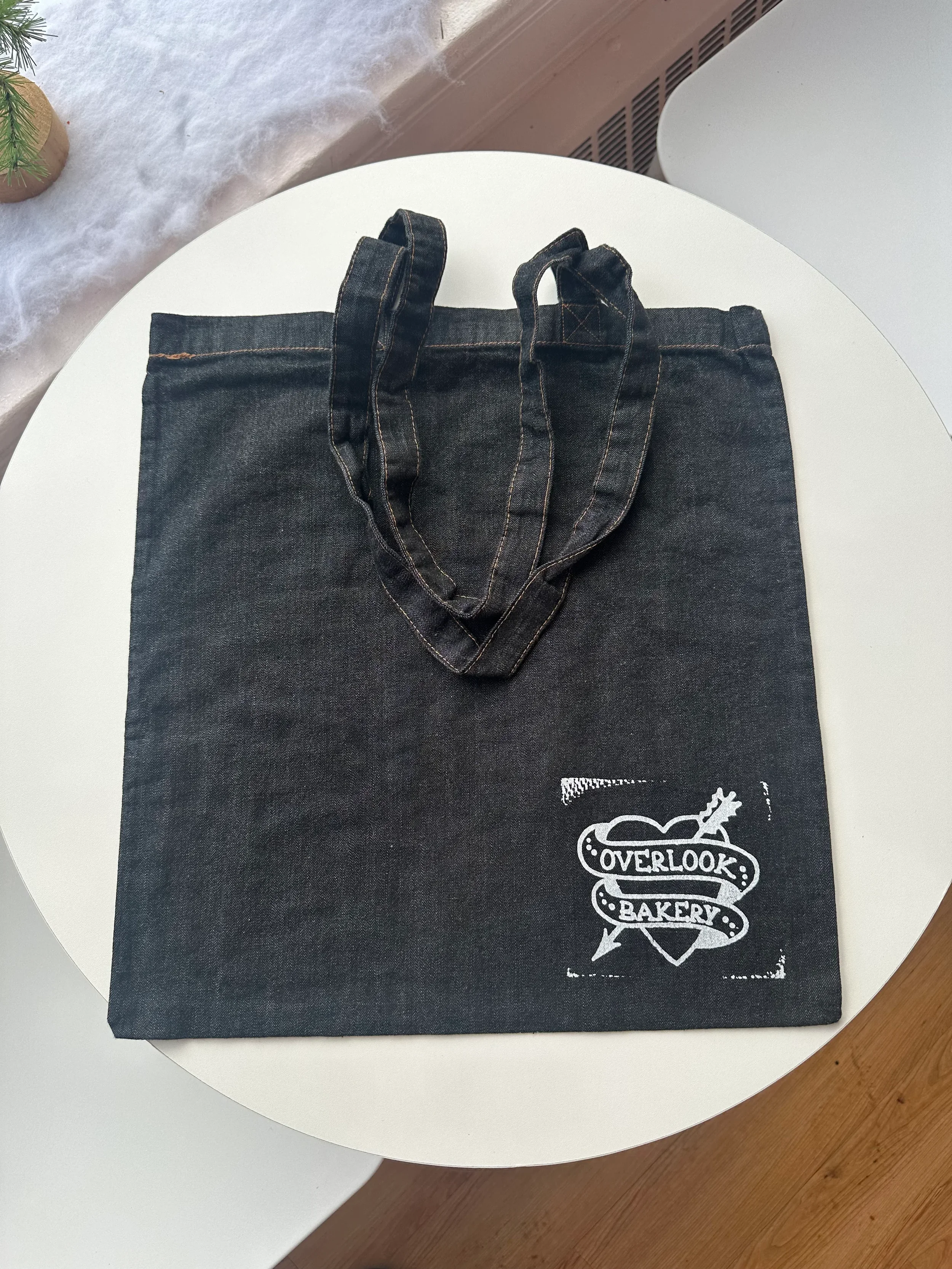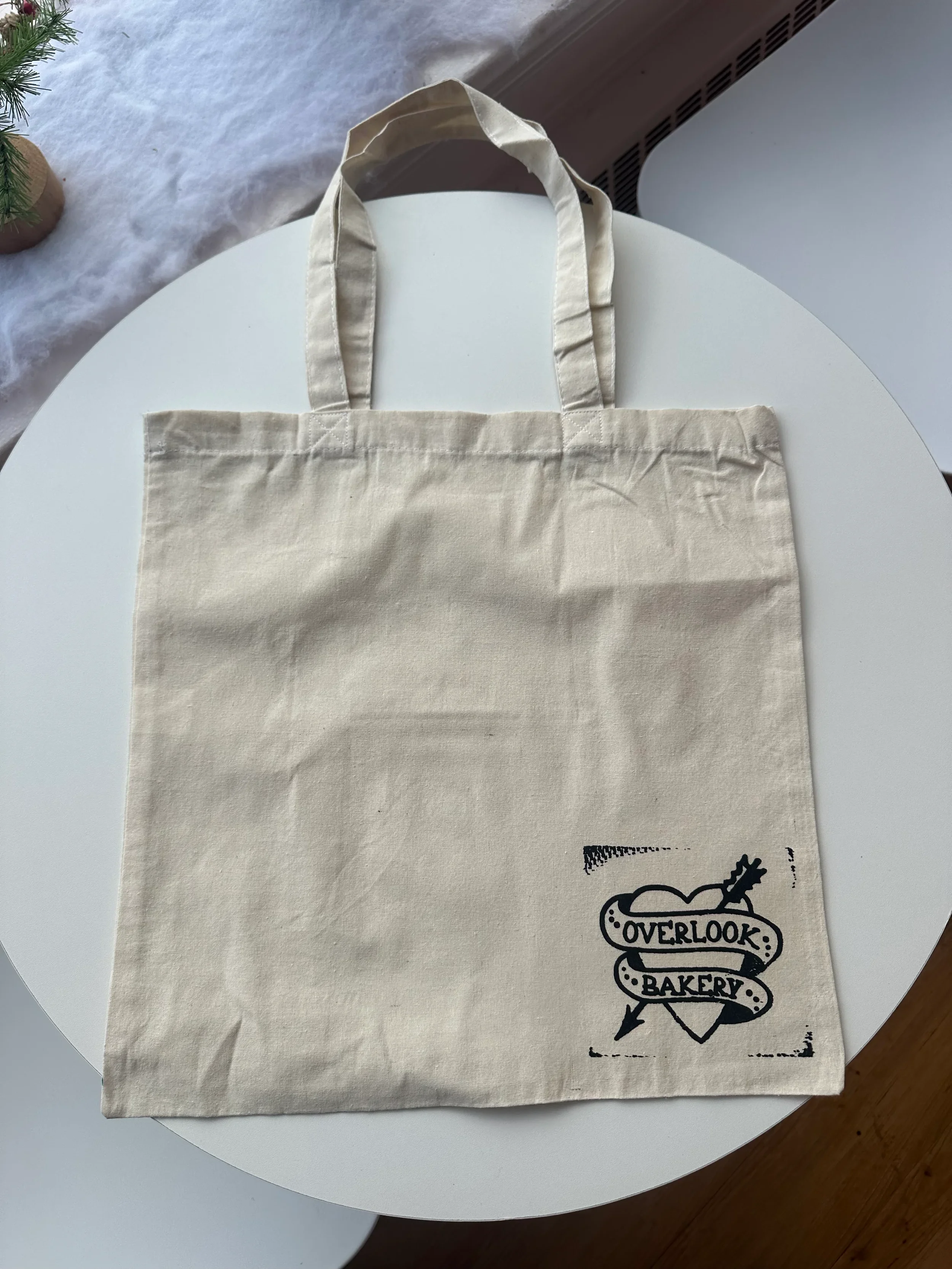 A durable, everyday tote featuring the Overlook Bakery logo printed in a single color. This classic flat tote is designed for easy carrying with long shoulder handles and reinforced stitching—ideal for market trips, bakery stops, or daily errands. Thoughtful, reusable, and made to be used again and again.